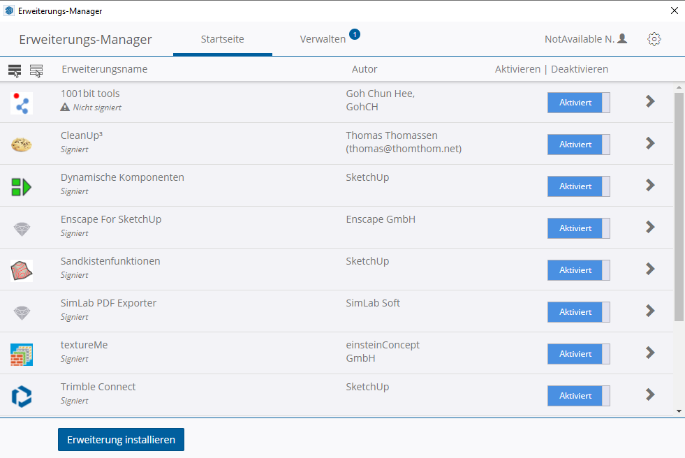 Wie kann ich SketchUp Zusatztools finden und installieren?