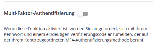 Auf der rechten Seite unter Multi-Faktor-Authentifizierung den Schieberegler nach links schieben, dann ist diese Option ausgeschaltet.