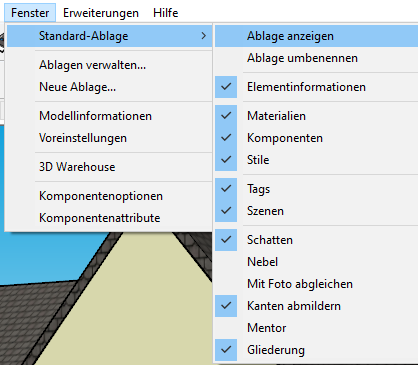 Wie kann ich die Standard Ablage in SketchUp wieder einschalten, wenn ich diese aus Versehen ausgeschaltet habe?